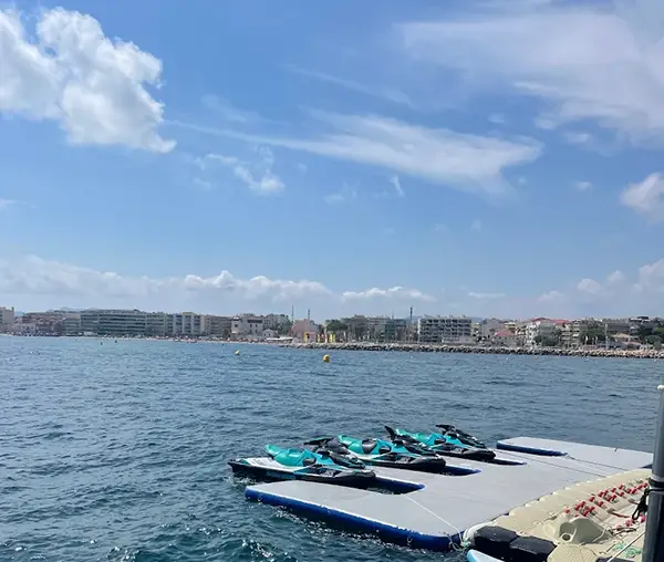 Si vous aimez l’eau, les sensations fortes et la mécanique, Cannes Jet Ride Evasion est fait pour vous. Installé sur le port du Mouré Rouge, à l’est de la Pointe Croisette, ce prestataire vous propose une expérience originale : avant de prendre le guidon de votre jet-ski, vous embarquez sur une navette qui vous conduit jusqu’à une base flottante, installée au large.